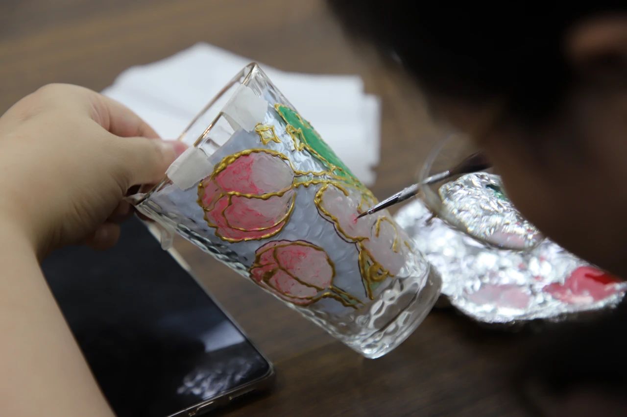 活動(dòng)中,公司工會(huì)特邀請了專業(yè)老師為參與活動(dòng)的女職工講解了手繪玻璃杯的制作步驟、注意事項(xiàng)和彩繪技巧,女職工們以玻璃為畫布,以興趣為靈感,在老師的指導(dǎo)下,盡情發(fā)揮想象,各自選定彩繪主題,提筆用玻璃專用顏料勾勒出一幅幅花卉、動(dòng)物圖案,現(xiàn)場每個(gè)人都投入在藝術(shù)創(chuàng)作中,小小的玻璃杯成了大家發(fā)揮創(chuàng)意和想象力的“舞臺(tái)”。大家互相討論,相互幫忙,你扶著我畫,我扶著你畫,現(xiàn)場其樂融融。